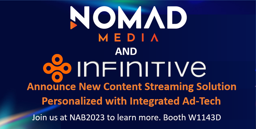 Nomad Media and Infinitive unveil a Personalized Premium Content Streaming Solution at NAB 2023, helping media owners monetize content libraries through personalized streaming and ad revenue.