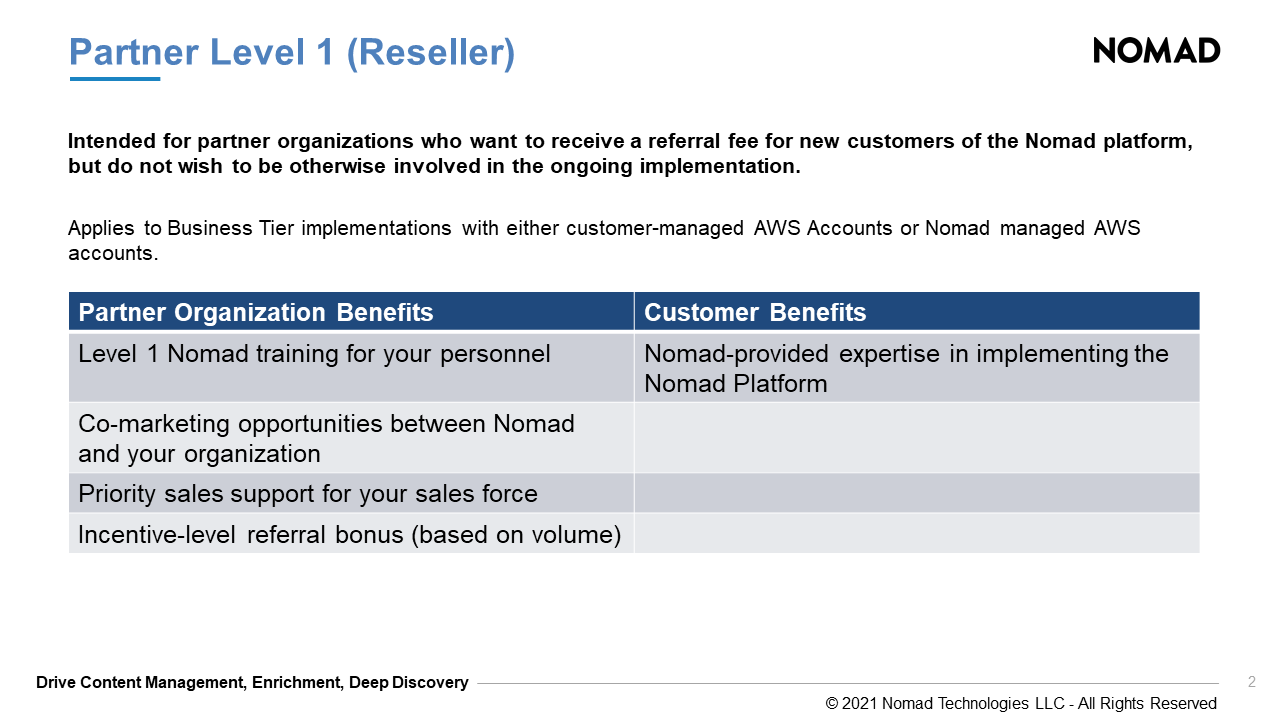 As of May 2021, Nomad Media has launched its Nomad Platform Partner Program! Cloud solution companies of all types can now partner up with Nomad Media for expert support on implementations.